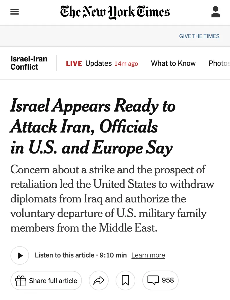 Friday, June 13: Media Cries ‘Rogue Israel’ Before Iran Responds by Targeting Civilians