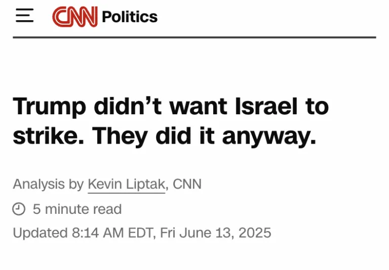 CNN’s Kevin Liptak, for example, published an analysis claiming Israel had “ignored direct warnings” from Trump and acted without U.S. involvement, describing the strikes as “against the president’s publicly stated wishes.”