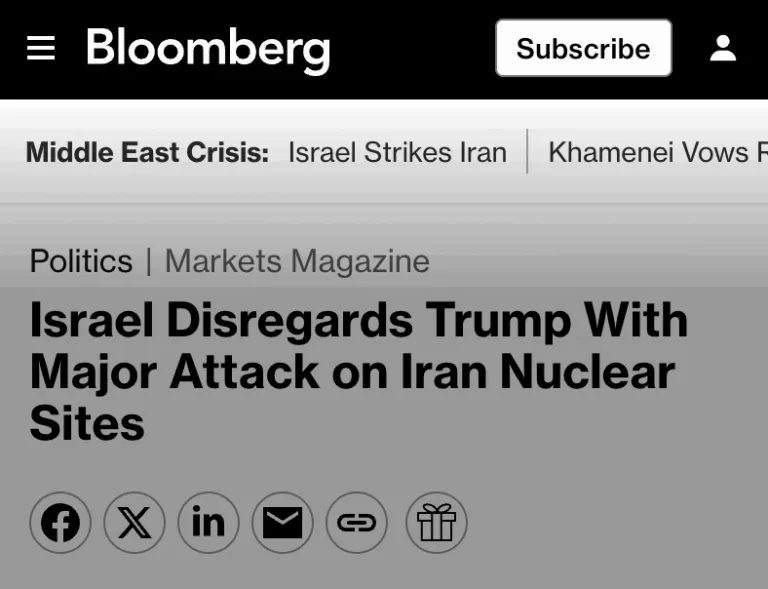 Bloomberg took a similar line, claiming Israel had “expressly disregarded the wishes of Trump”—even as Trump himself, just hours later, confirmed U.S. foreknowledge and praised the mission’s success.